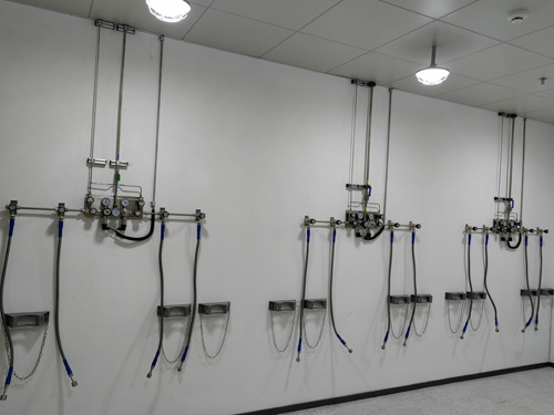 2.4N惰性氣體行政主管線運用OD3/8”(6.35mm)的熱力熱力管道,0.5Mpa有壓力下作量可達到8M3/小時內,基本滿意常規檢查用氣使用需求,支線運用OD1/4”(6.35mm)的熱力熱力管道。用點焊三通管區分出支路來對環保設備參與集中供熱。